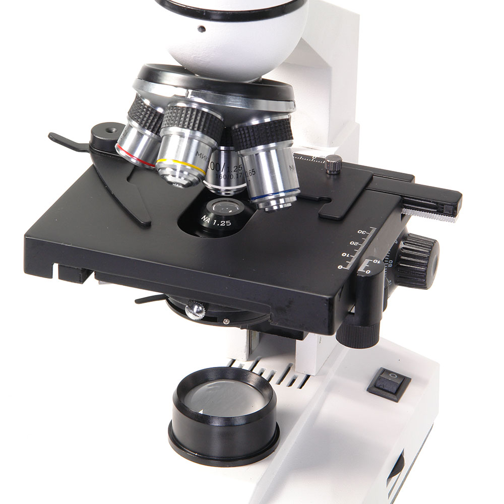 Микроскоп Микромед Р-1 LED представляет собой отличный инструмент по соотношению “цена-качество” для применения в учебной практике в микробиологии. Микроскоп оснащён всем необходимым в комплекте, и готов для работы сразу же из коробки. Благодаря простоте конструкции, и минимально необходимому обслуживанию, микроскоп способен долгое время проработать в учебном классе. В микроскопе Микромед P-1 LED так же нет необходимости менять лампы из-за применения светодиода. Благодаря большому предметному столику размером 100 на 125 мм, с диапазоном перемещения 60х30 мм исследования можно проводить с гораздо большим комфортом, чем на моделях с фиксированным предметным столиком.