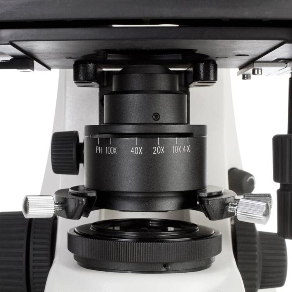 Микроскоп рассчитан на длину тубуса «бесконечность», объективы стандарта DIN, парфокальная высота объективов 45 мм.