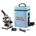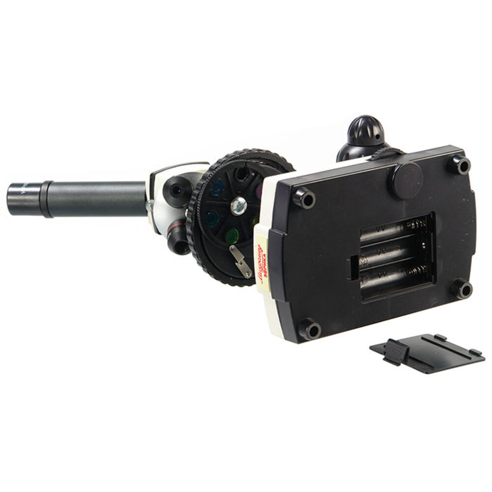 Микроскоп предназначен для изучения биологических объектов в виде мазков и срезов.Микроскоп может быть использован для лабораторных биологических работ в домашних условиях, в школах, лицеях и дошкольных учебных заведениях. Микроскоп оснащен встроенными осветителями, которые работают от сети переменного тока 220В или от трех батареек типа АА (в комплект не входят). Универсальность питания осветительной системы позволяет использовать микроскоп и в домашних условиях, и в учебных классах и в походных условиях. А удобный компактный кейс обеспечивает сохранность оптического прибора при переноске. В комплекте к микроскопу идет линза Барлоу. Ее основное предназначение изменение кратности увеличения. Например, линза 2.0х (как в нашем случае) удвоит увеличение. Устанавливается линза в окулярный тубус (перед окуляром).