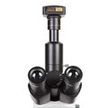 Конструкция тринокулярной визуальной насадки микроскопа позволяет выводить изображение в режиме реального времени на экран ПК с помощью видеоокуляра (в комплект не входит). Видеоокуляр устанавливается в специальный выход — канал визуализации. Это позволяет одновременно наблюдать изображение через окуляры микроскопа и на экране ПК.